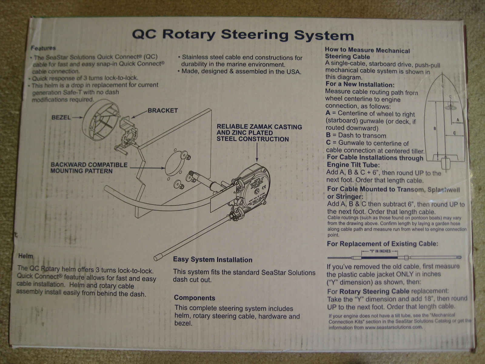 The Quick Connect steering system is the OEM,s choice for simple , safe , reliable easy to install for inboard boats & outboards to V6 . This system does not require tools to connect the cable to the helm making instalation easy .