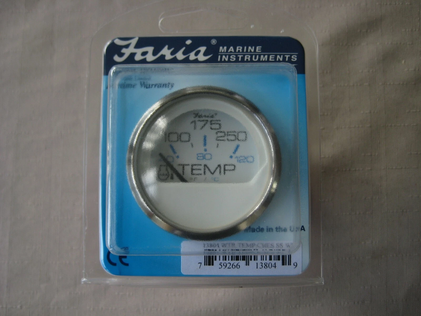 FARIA CHESAPEAKE STAINLESS STEEL TEMPERATURE GAUGE . WHITE