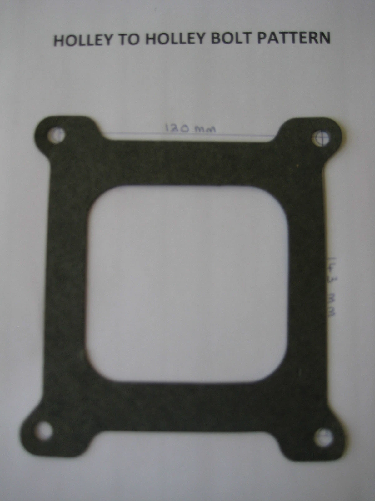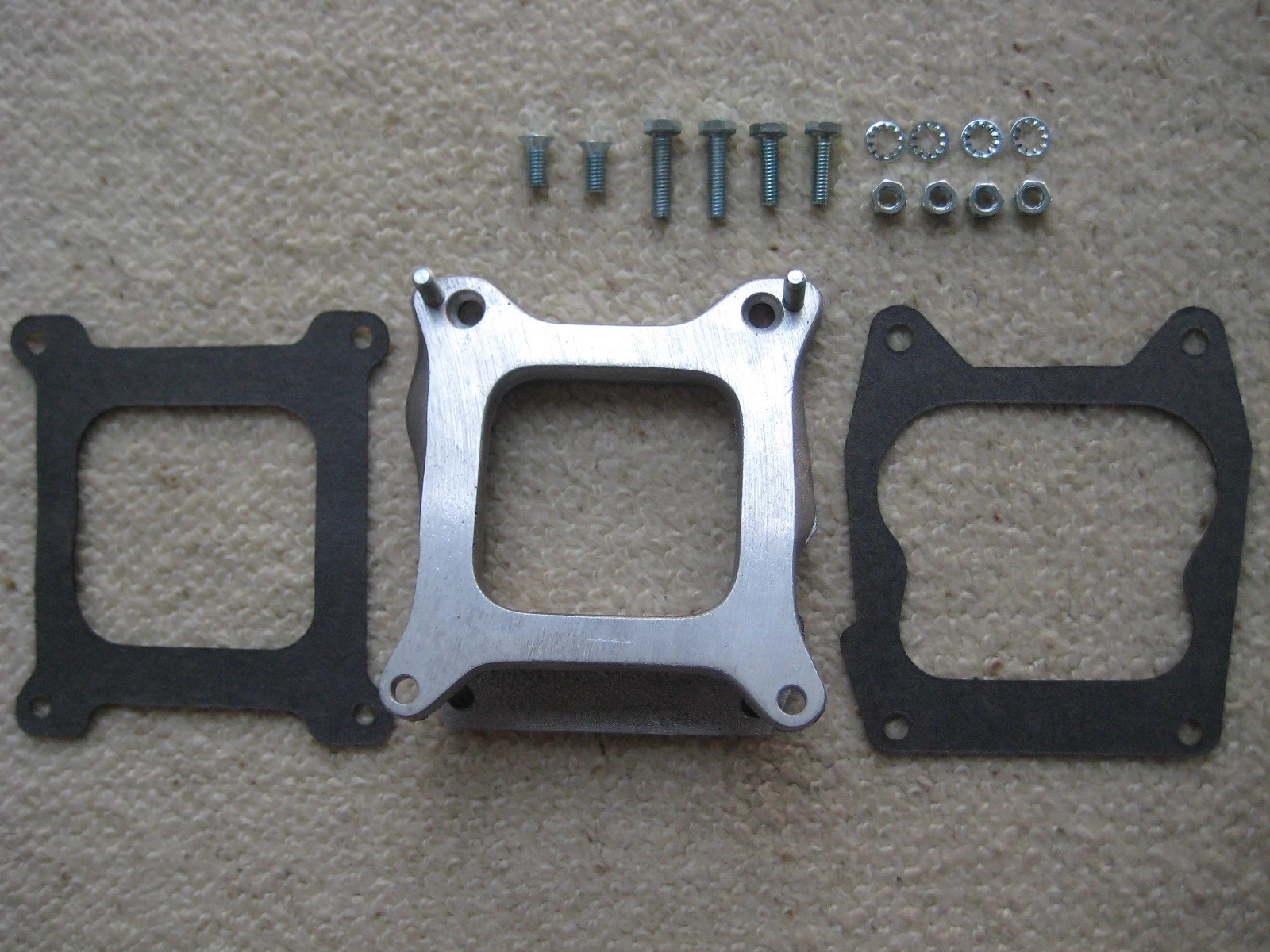 MARINE CARBURETOR WEDGE TO CONVERT A SPREAD BORE MANIFOLD TO ACCEPT A SQUARE BORE CARBURETOR FOR CHEV & HOLDEN .