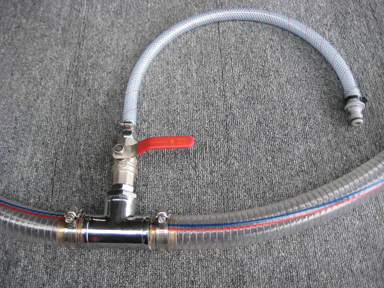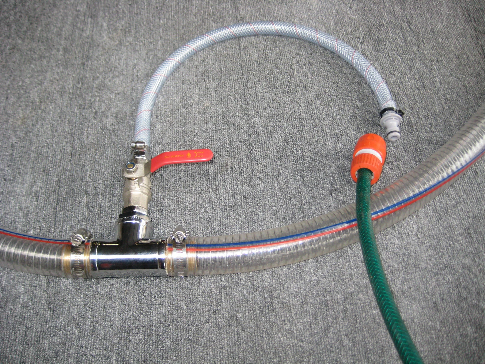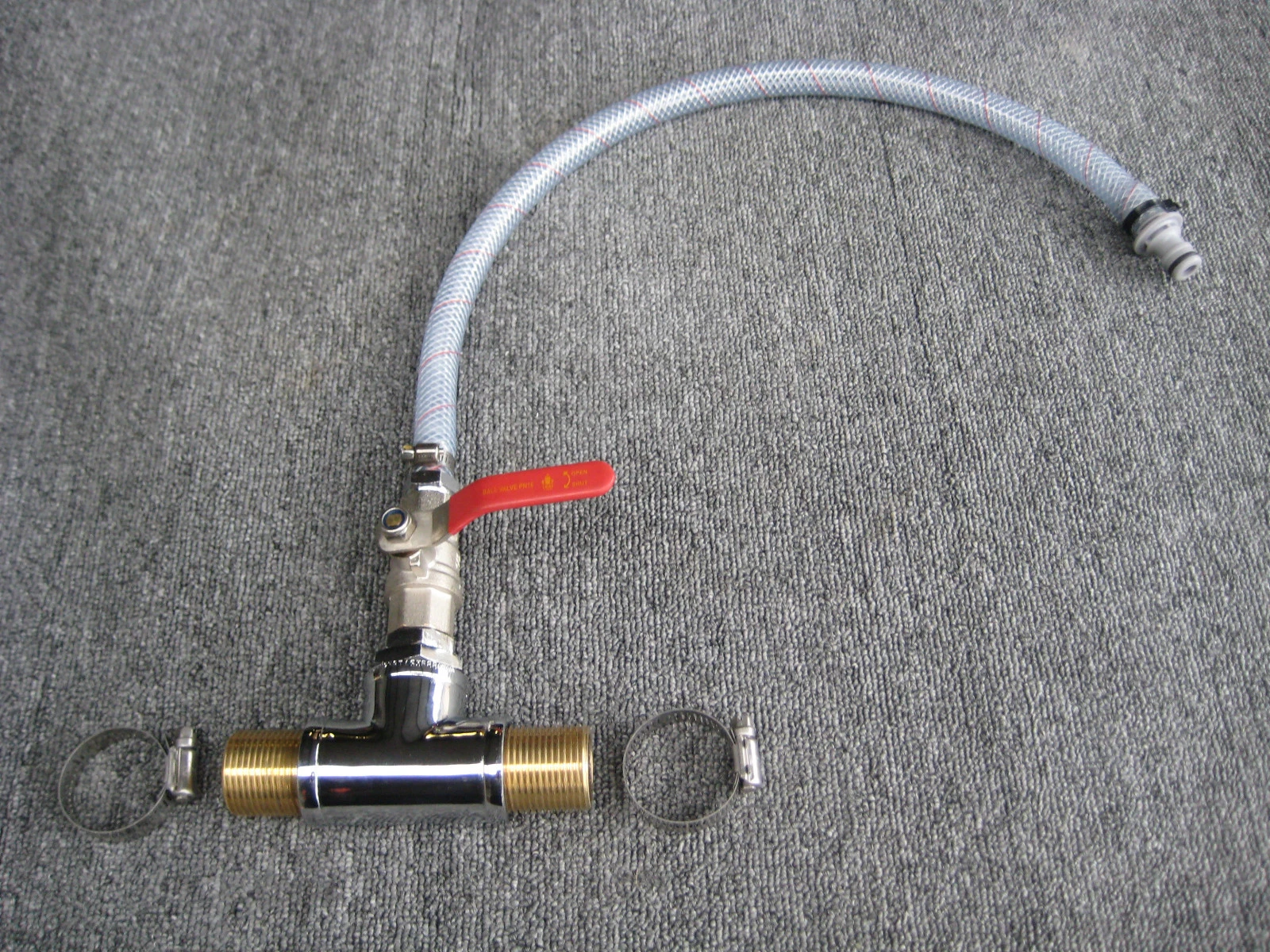 IT ENABLES YOU TO FLUSH YOUR ENGINE WITHOUT HAVING TO PULL HOSES OFF UNDER THE FLOOR . IT IS IMPORTANT THAT YOU FLUSH YOUR ENGINE BE IT USED IN SALT WATER TO REMOVE THE SALT WATER IN THE BLOCK TO PREVENT SALT WATER CORROSION OR IN FRESH WATER USE TO REMOVE THE MUD FROM THE RIVER THAT BUILDS UP IN THE BLOCK & THEN COURSES OVERHEATING . ALSO IT ENABLES YOU TO RUN YOUR ENGINE ON THE TRAILER FOR TUNING & WINTER MAINTANANCE . YOU SHOULD RUN YOUR ENGINE AT LEAST EVERY 3 WEEKS IN WINTER TO KEEP ALL ENGINE PARTS LUBED & ENSURE YOUR WATER PUMP IS WORKING & NOT SEAZED IN THE PUMP HOSING. THE KIT FITS NEATLY BETWEEN THE RIVER SCOOP & THE PUMP .