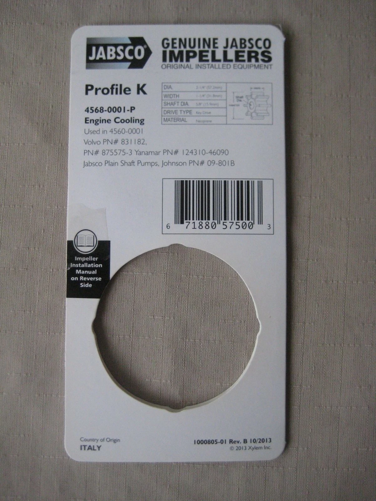 JABSCO WATER PUMP IMPELLER 4560-0001 FOUND ON THE BACKING PLATE OF JABSCO WATER PUMP