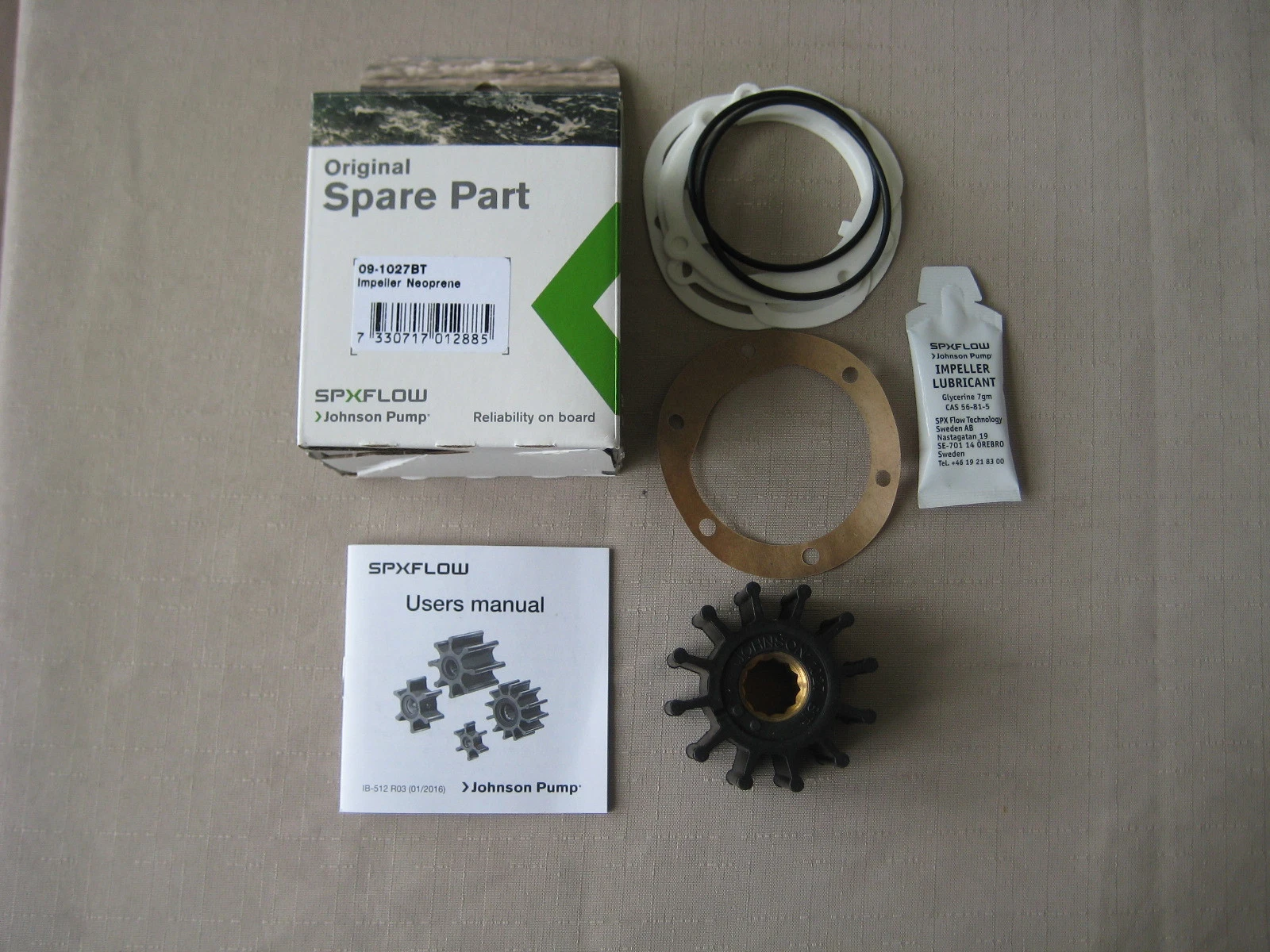 This listing is for a genuine Johnson water pump impeller kit F5B-8 found on the backing plate . Comes with genuine Johnson impeller . Gasket . Lube to run your impeller in . Instructions . Spare gaskets for other applications