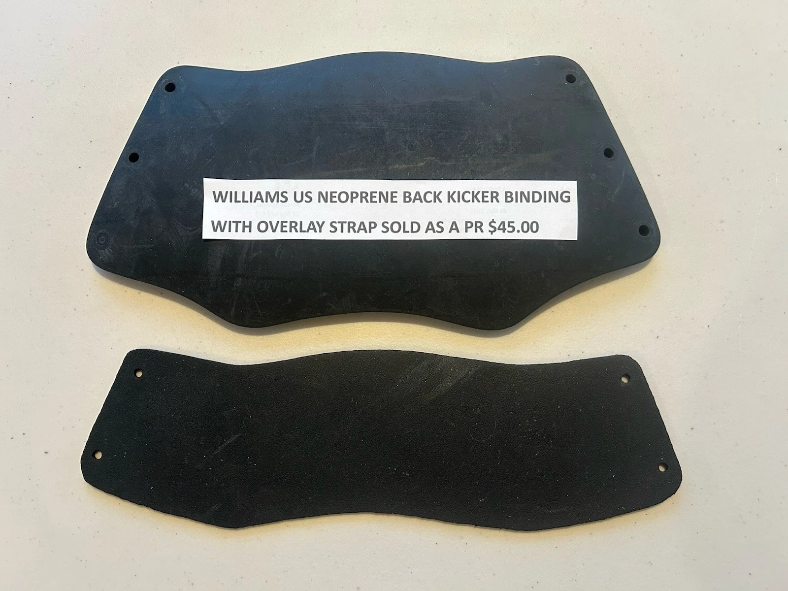 This Williams rear back kicker binding & overlay strap are sold as a pr Any one of these can be sold separately. The binding. Can be identified buy the 2 wing nuts that adjust the heel . See our other items .